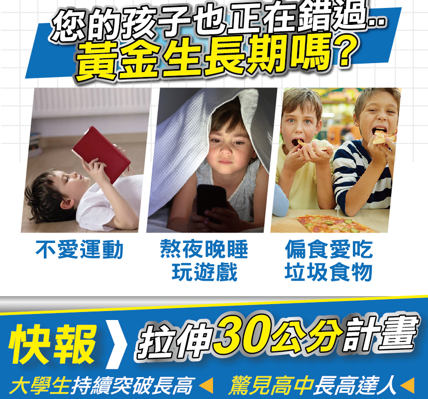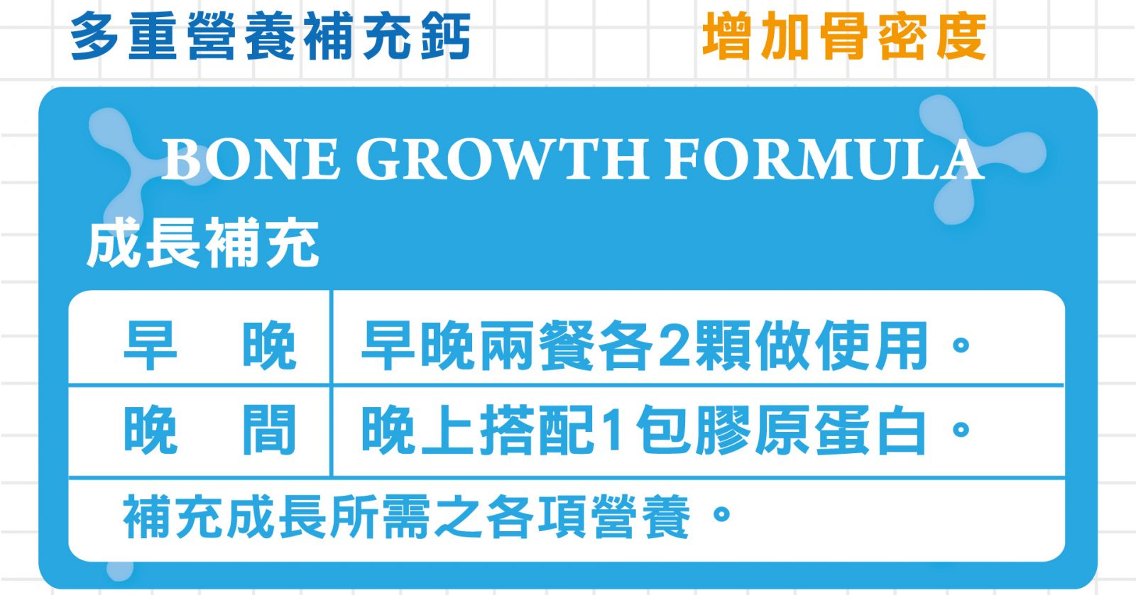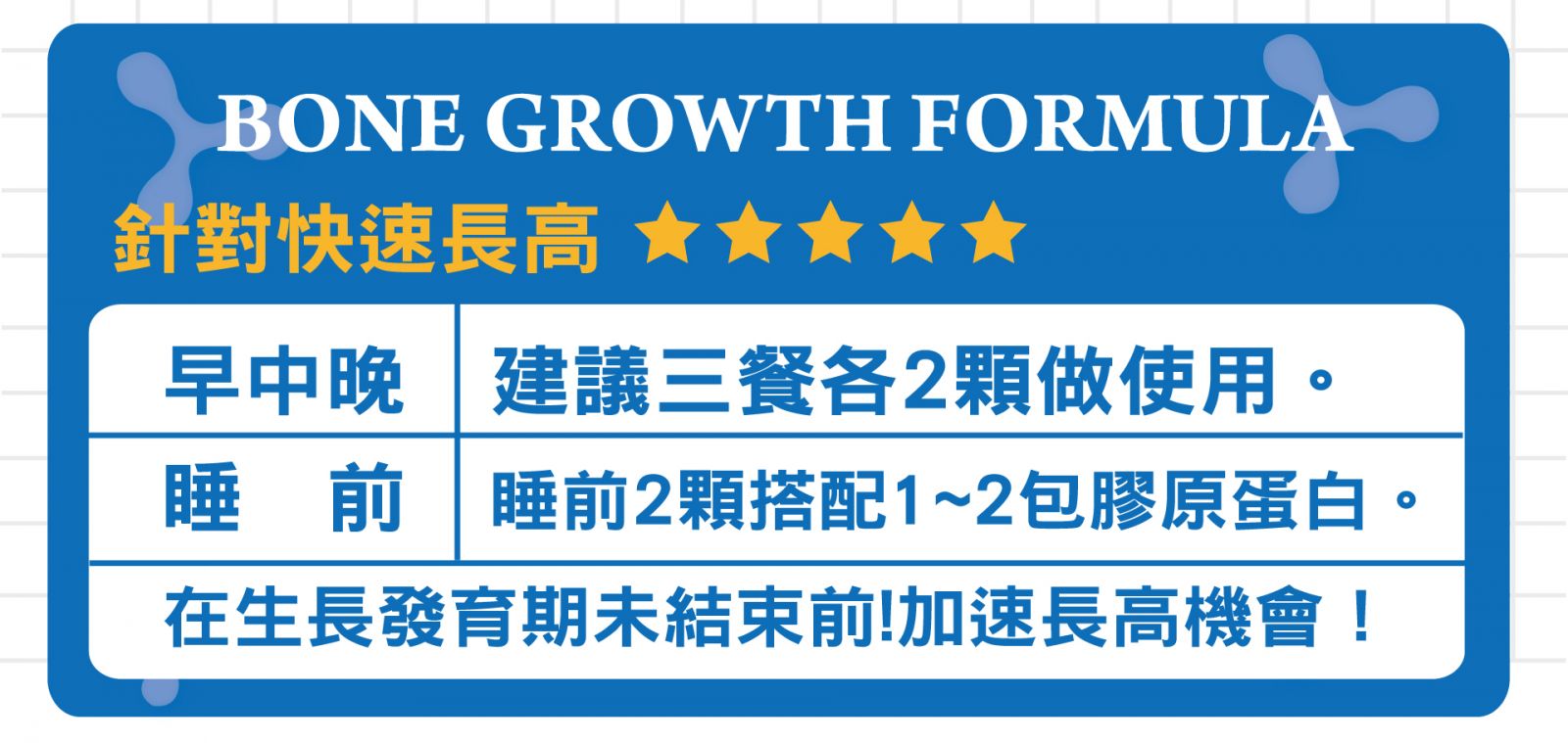 快速長高_三餐飯後及睡前各2顆成長補充_睡前1包