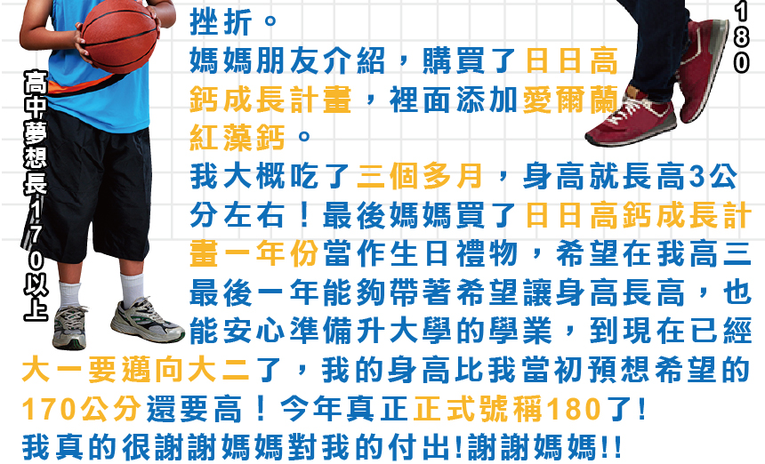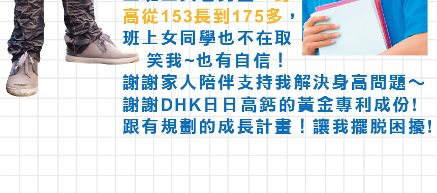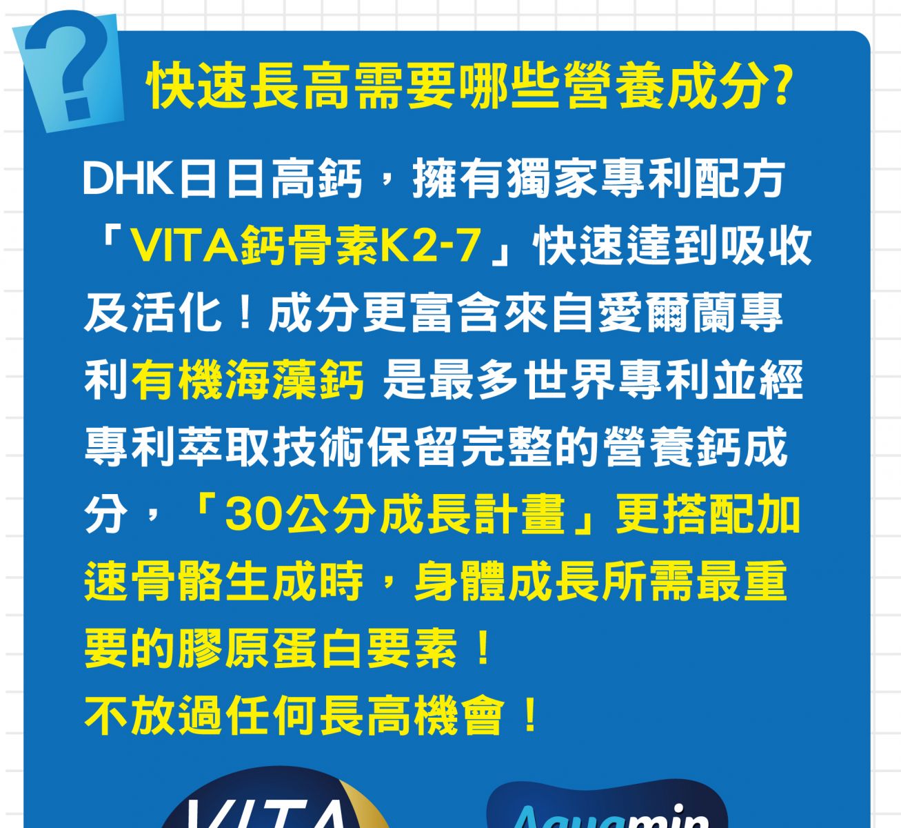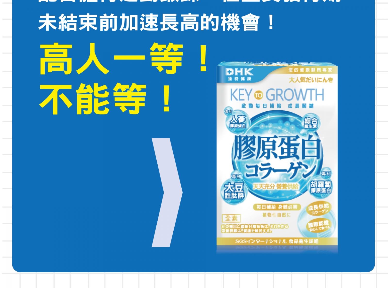 建議持續使用3~6個月以上,加強長高效果可搭配DHK膠原蛋白一起使用、持續使用不間斷為最佳。
