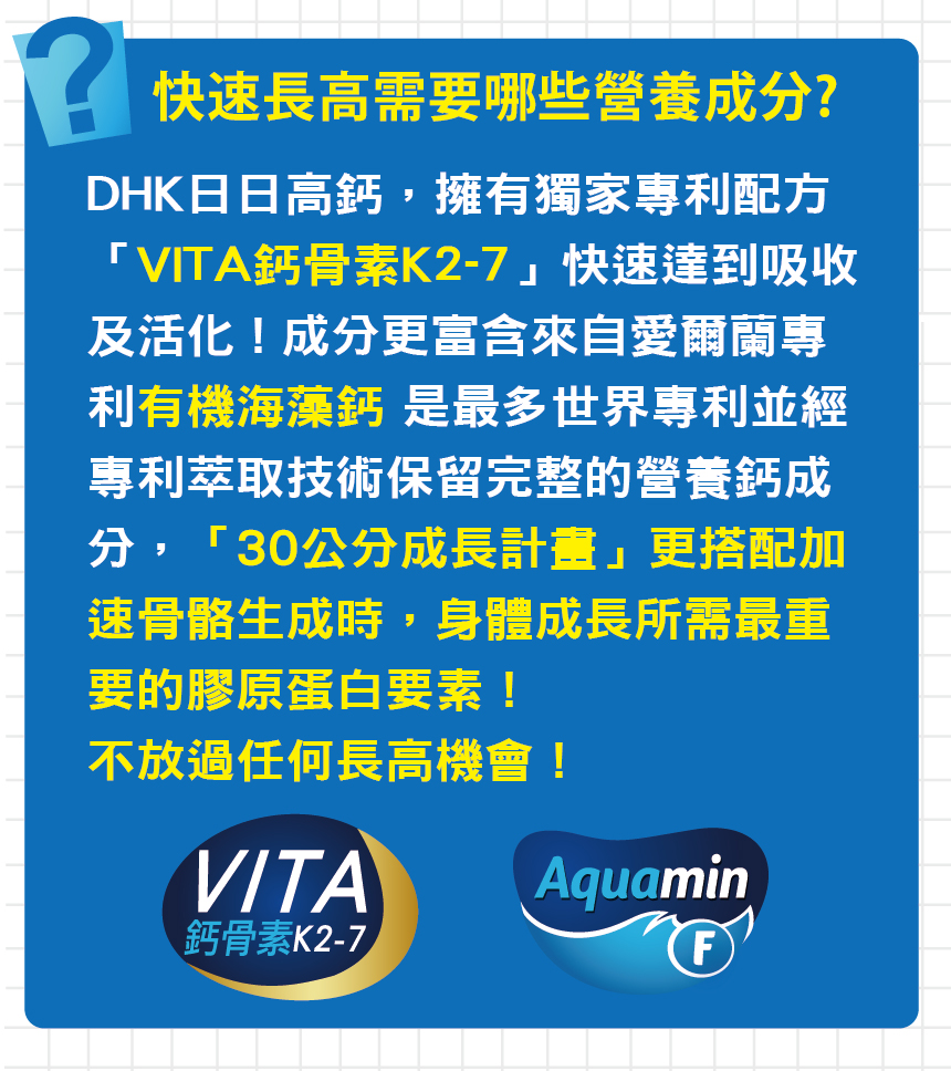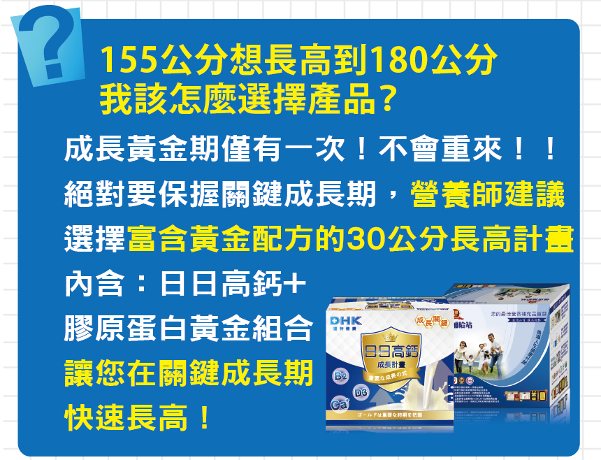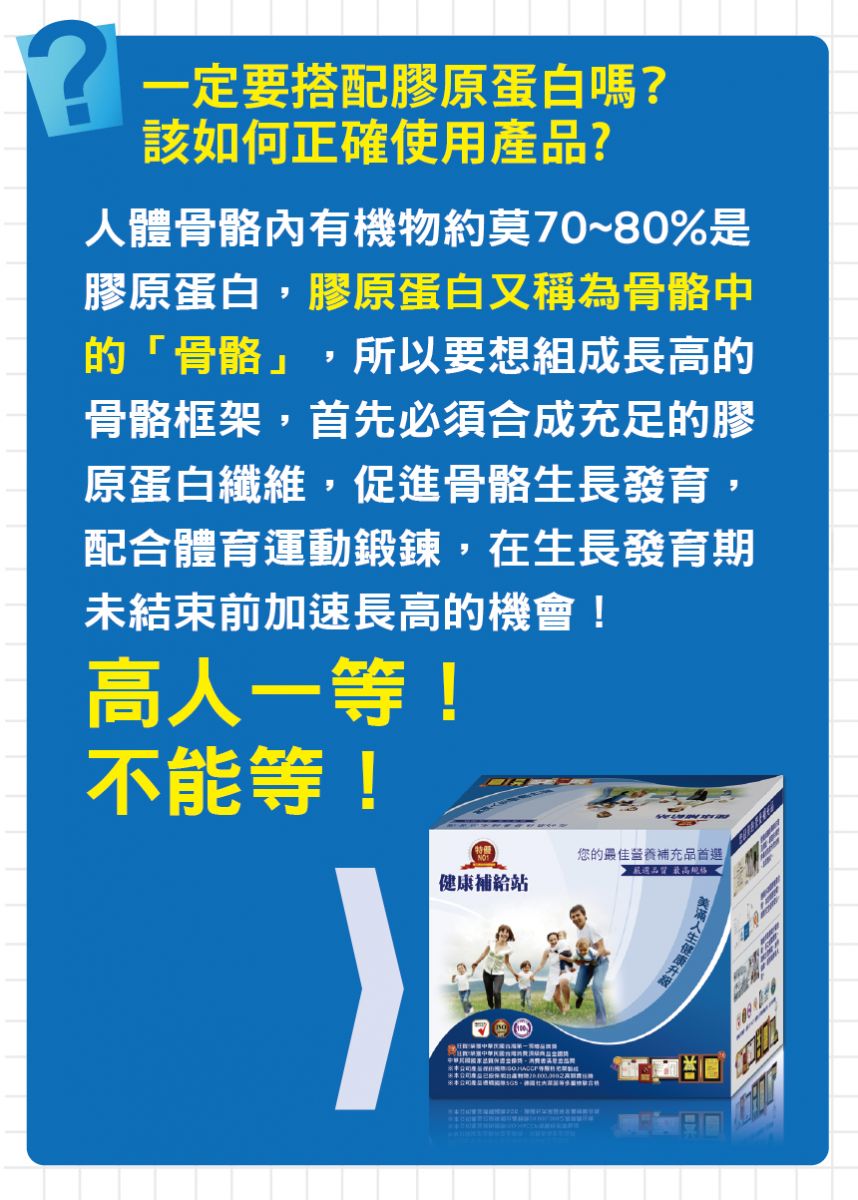 建議持續使用3~6個月以上,加強長高效果可搭配DHK膠原蛋白一起使用、持續使用不間斷為最佳。